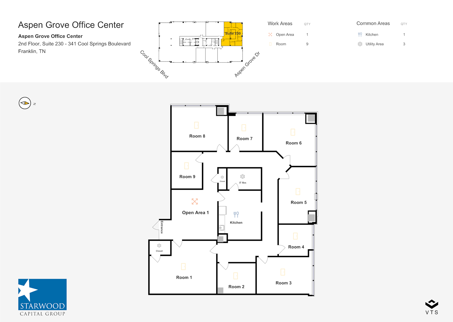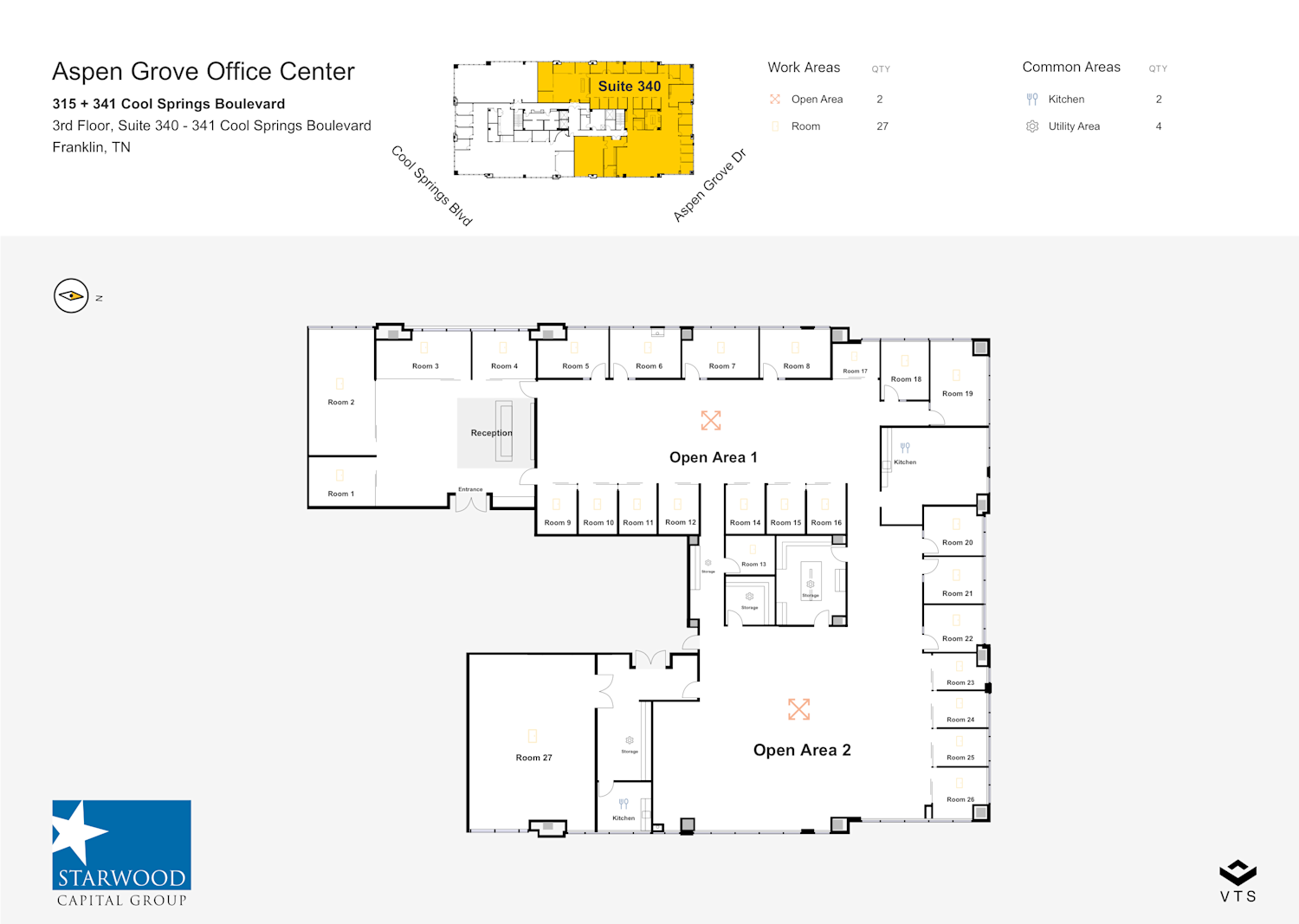 341 Cool Springs Boulevard offers an efficient and inviting office center on a beautifully landscaped ten acre campus. Located at the southwest corner of Cool Springs Boulevard and Aspen Grove Drive, 341 CSB is four levels of 21,500+ SF floorplates totaling 86,000 RSF. There are two ingress/egress points to the campus with parking available at a ratio of 4/1,000 RSF. 341 CSB offer tenants very efficient suites with abundant natural light and beautiful views.